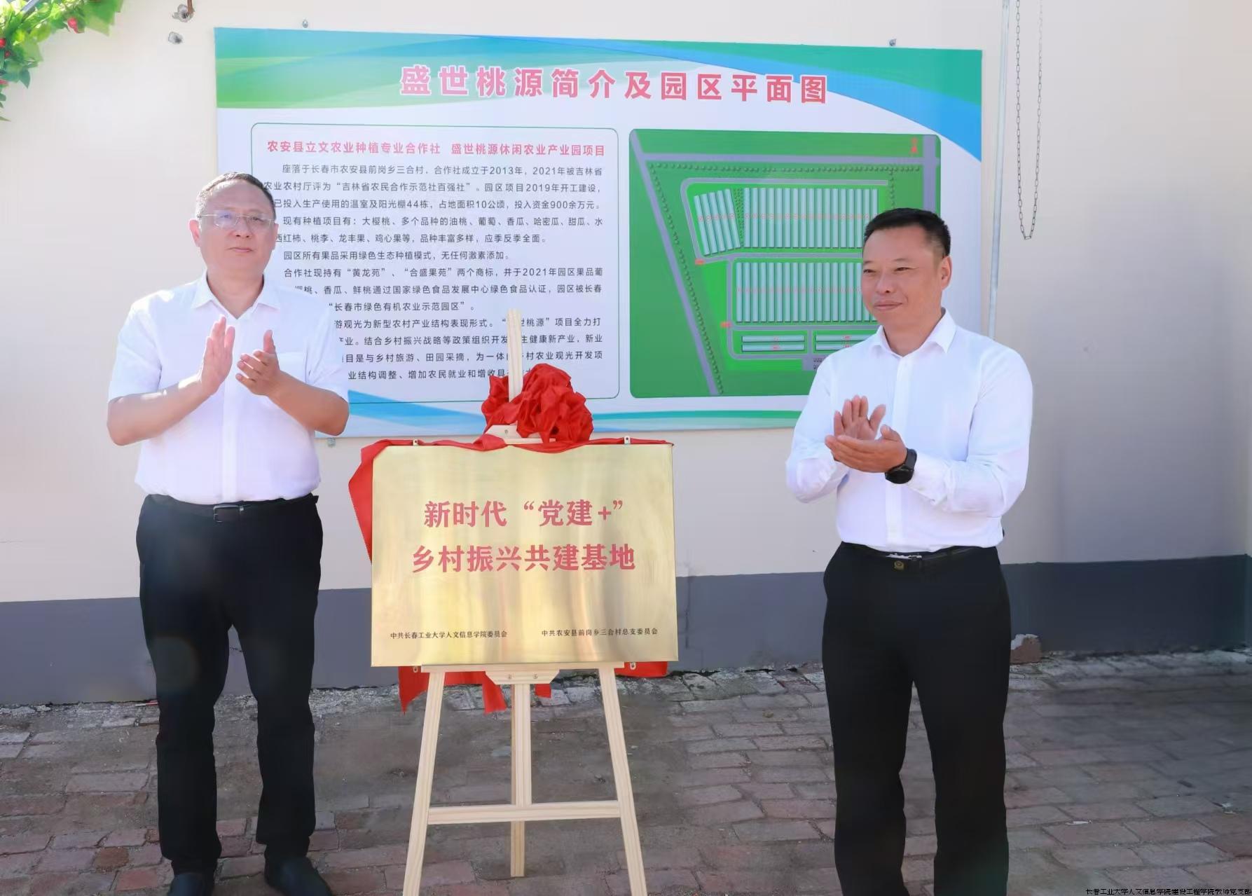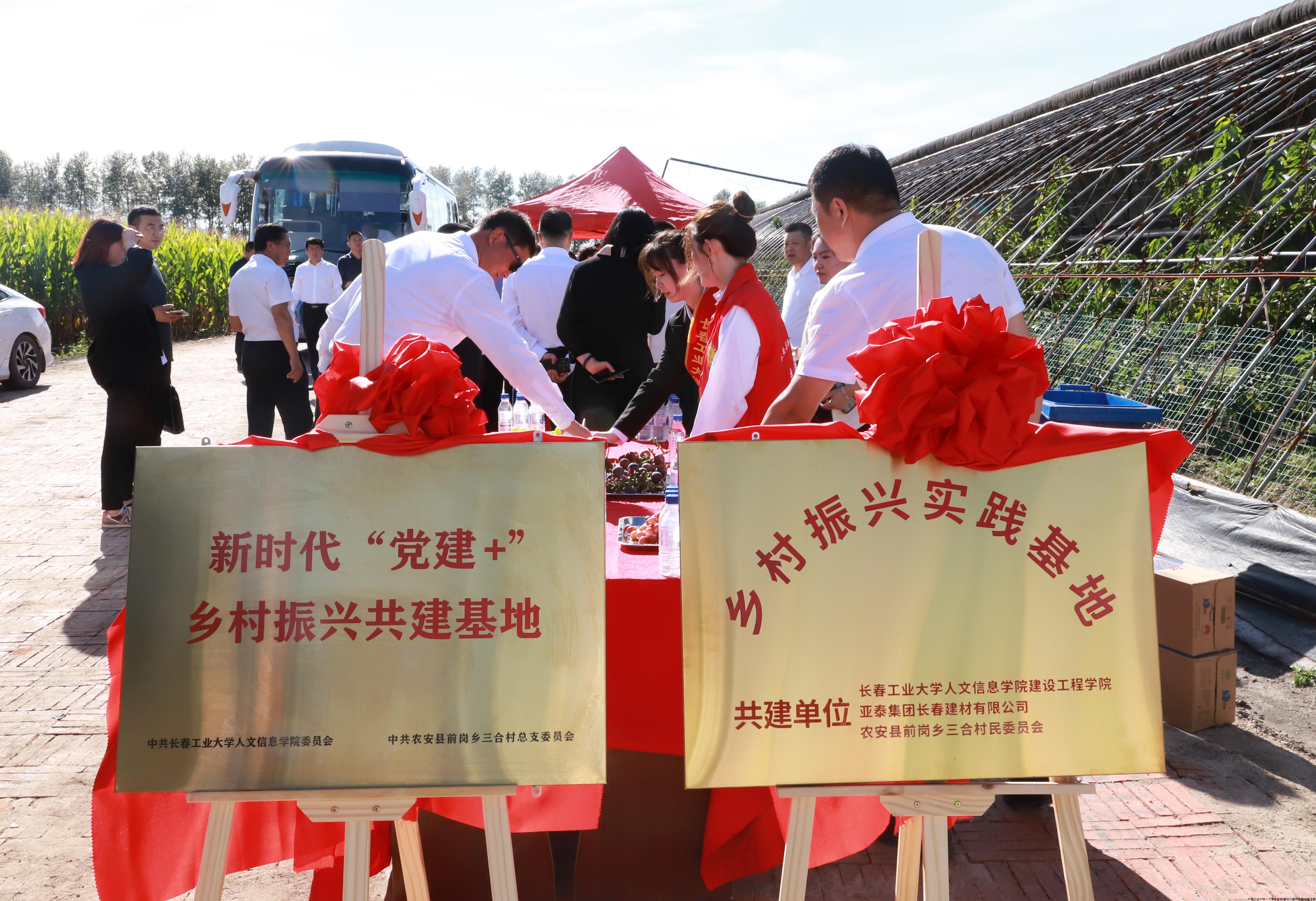为深入贯彻落实习近平总书记在新时代推动东北全面振兴座谈会上的重要讲话精神和视察吉林重要讲话重要指示精神,以实际行动回答好“教育强省、高校何为”的时代问卷,在长春市工商联的积极推动下,9月12日,长春工业大学人文信息学院与农安县前岗乡三合村共建的新时代“党建+”乡村振兴基地和校企地“乡村振兴实践基地”正式揭牌,并举行共建活动。长春市委统战部、长春市工商联(总商会)副主席(副会长)、常委及农安县相关领导,学校党委相关领导和相关部门负责人出席活动。