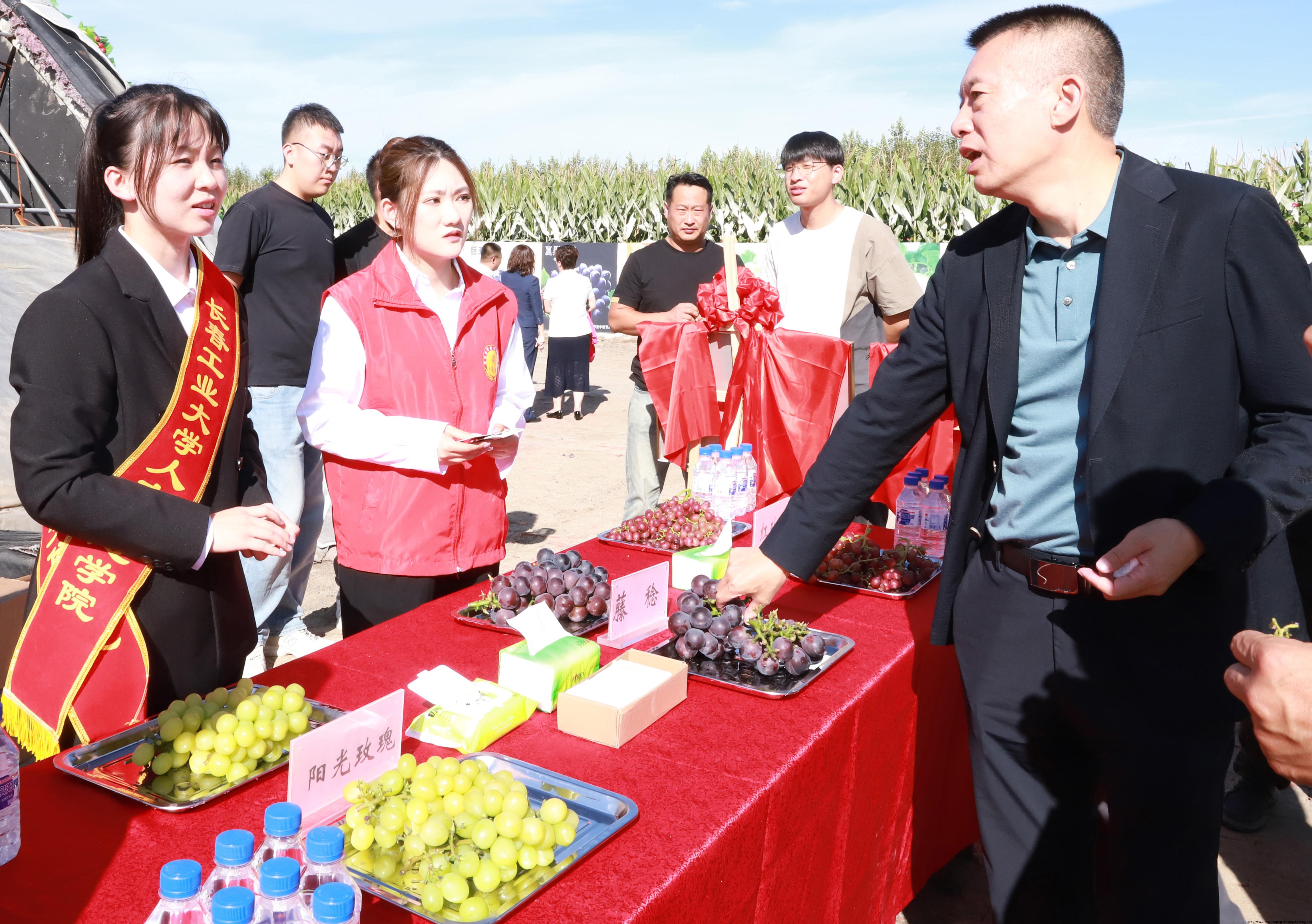 揭牌结束后,与会领导和嘉宾共同参加了三合村葡萄品鉴展销节活动。本次活动中,建设工程学院、商学院、艺术设计学院在环境美化、电商平台搭建、现场志愿服务等方面提供了高标准、高质量的智力支持和人力支援。
