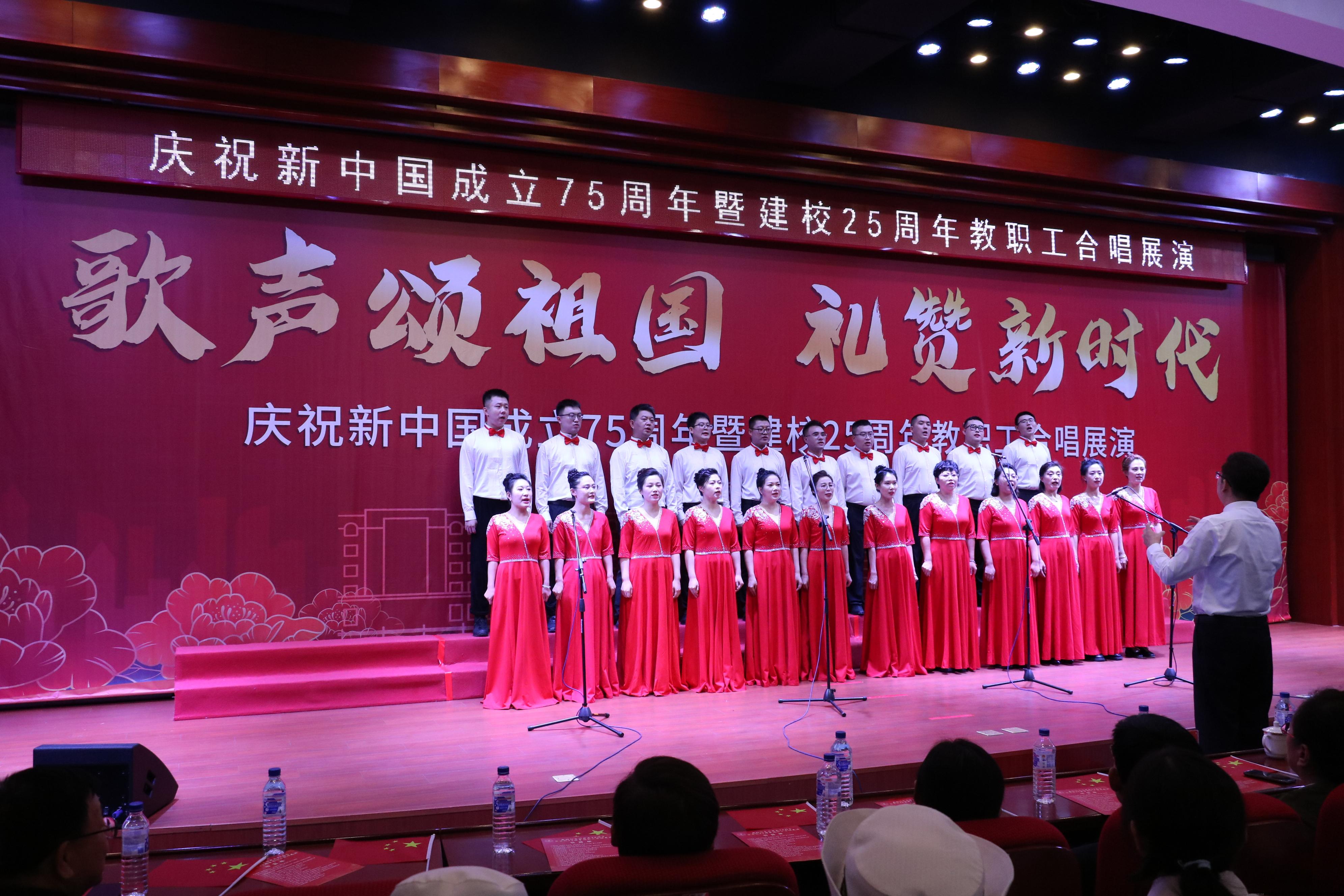 建设工程学院全体教师参加了这次合唱展演活动,倾情演唱《我和我的祖国》《没有共产党就没有新中国》两首曲目。