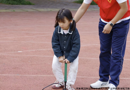 志愿者还组织开展了水火箭制作体验活动,在操场上,腾空而起的自制火箭,让小朋友们惊叹连连,踊跃进行尝试和探索。志愿者向孩子们讲解了其中的原理,小朋友们对航空知识充满了好奇和探索的兴趣。