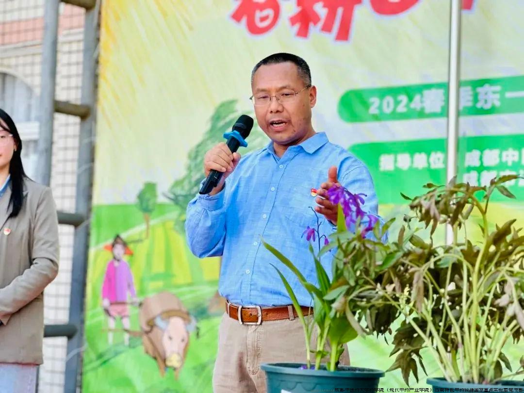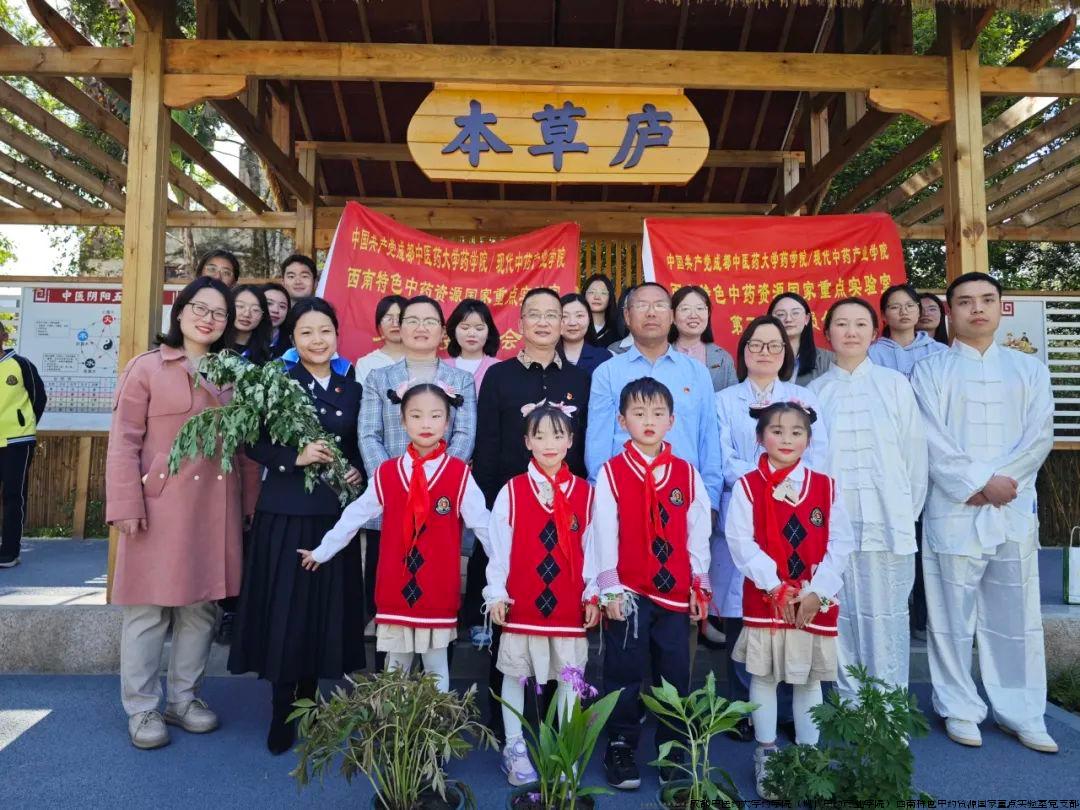 为全面贯彻落实党的二十大精神和2024年全国两会精神,积极向中小学生普及中医药文化,2024年3月28日,中共成都中医药大学药学院/现代中药产业学院西南特色中药资源国家重点实验室党支部主题党日活动暨温江区东大街一小“百草园”开园仪式在东一小(北校区)联合开展。支部书记谢晓芳、副书记杜明胜、纪检委员郭一平、宣传委员黄艳等支部党员,以及药学院/现代中药产业学院国重第二党支部党员和青杏药植管理部本科生志愿者共19人参加活动。出席活动的还有温江区东大街第一小学校长/党支部书记鄢光文、分管北校区的副校长聂品和万春镇中心卫生院党支部书记/副院长郭玲等。