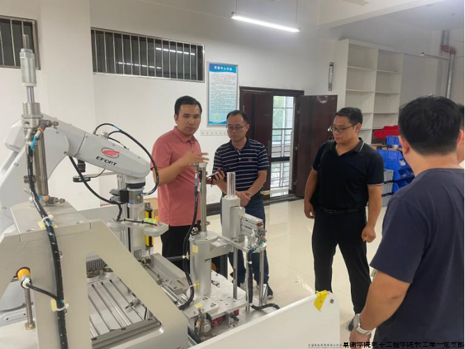 为深入贯彻落实新时代党的建设总要求,推动党建工作与业务工作深度融合、同频共振,以高质量党建引领专业高质量发展,9月17日,巢湖学院电子工程学院许明坤副院长携教工第一党支部书记张伟亮及专业骨干教师一行,前往安徽工业大学就智能装备与系统专业建设和智能制造与工业机器人综合教学实训平台建设进行专题调研学习。此次调研旨在学习借鉴兄弟院校的先进经验与成功做法,为我校高标准、高起点建设同类专业和实验平台奠定坚实基础。