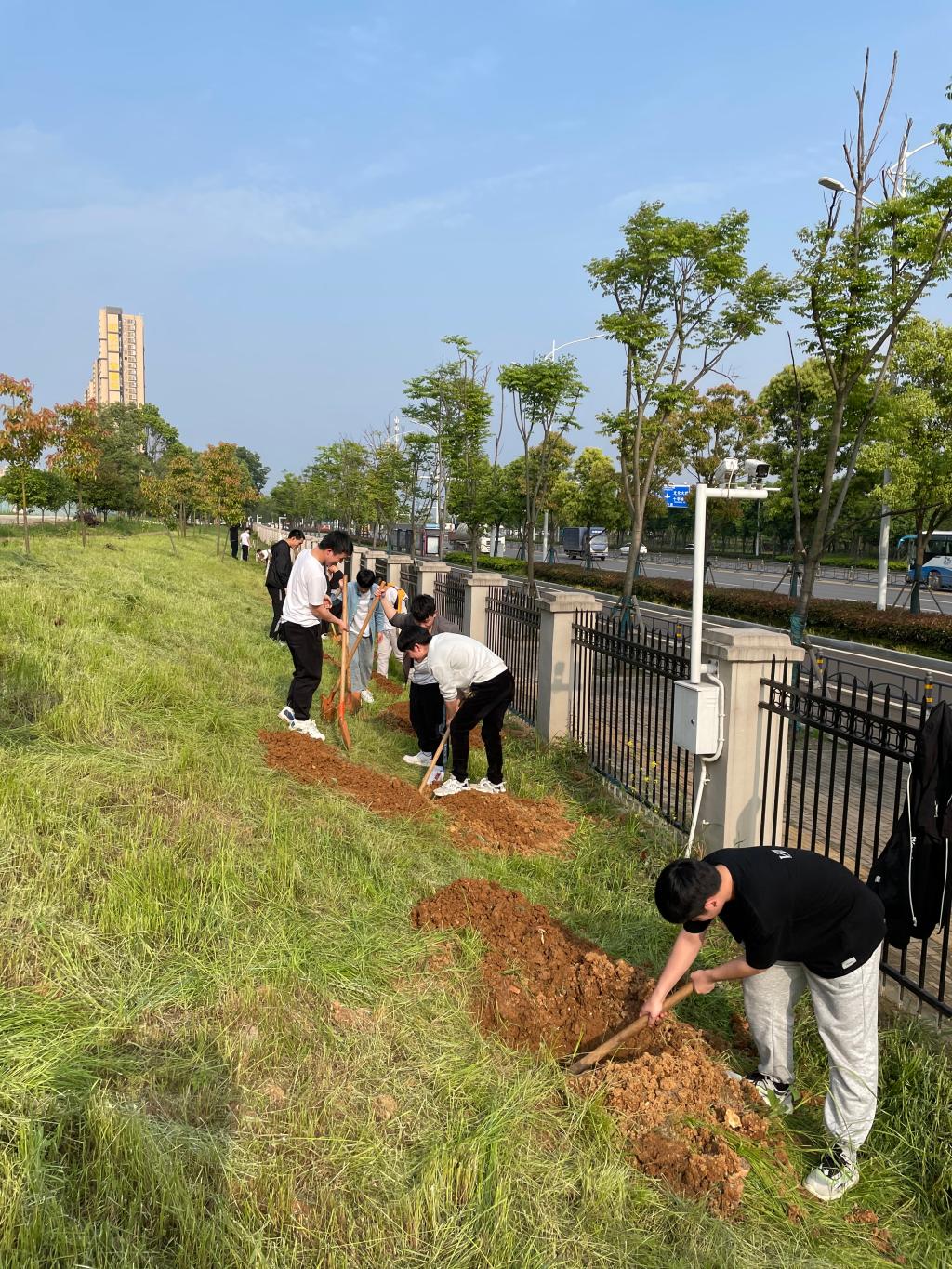 近年来,我院坚持组织师生们积极开展义务植树活动,不断增强师生们的环保意识,营造了人人植绿、人人爱绿、人人护绿的良好氛围,也为美化校园贡献了自己的一份力量。下一步,“蓝天”志愿服务队将对接大桥社区,持续开展各项志愿服务活动。