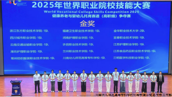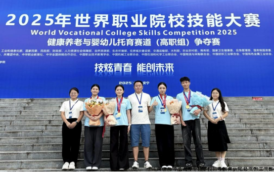 8月28日—9月2日,世界职业院校技能大赛健康养老与婴幼儿托育赛道总决赛争夺赛在云南交通运输职业学院举行。川南幼儿师专江欣悦、雍双双、侯姝彤、杨德富四位学生组成的团队,在谢梦怡、宁丹等教师的指导下,在全国155支参赛团队中脱颖而出,喜获金奖。这是学校继2024年后,在同类赛项中再次荣获金奖,充分彰显了学校在职业教育领域的深厚实力与育人成效,标志着学校技能人才培养质量迈上新台阶。