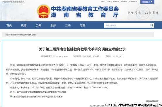 湖南省基础教育教学改革研究项目是省教育厅为深化基础教育改革、提升教育教学质量设立的重要研究平台,旨在鼓励教育工作者聚焦教育实践中的重点、难点问题开展研究。此次立项评审竞争激烈,全省多所高校、中小学的数百个项目参与申报,立项课题需兼具理论创新性与实践可行性。