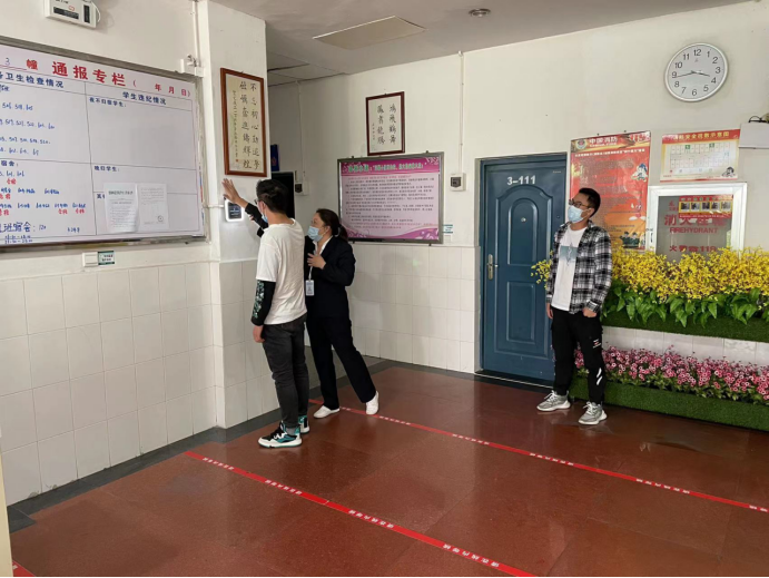 四是构建智慧防疫模块。常态化疫情防控以来,钉钉系统为学生社区疫情防控工作提供了诸多便利,是学生社区智慧服务的重要组成部分,学生通过各楼幢的钉钉系统每日进行人脸识别与体温检测并上报数据,社区管理人员可从后台看到当天还有哪些学生没有进行体温检测以及体温异常学生,这对于学生社区的疫情防控工作奠定了坚实的数据基础,学生社区管理人员可通过后台记录的数据及时排查隐患,在常态化疫情防控阶段为学生提供一个安全舒适的环境。同时,钉钉的人脸识别还可用于学生社区晚间查寝,如出现宿舍请同学替床等情况时,在钉钉系统上面一测就可知结果,这也在一定程度上防止学生晚就寝时跑出宿舍,解决了很多不必要的麻烦,为学生的人身安全保驾护航。