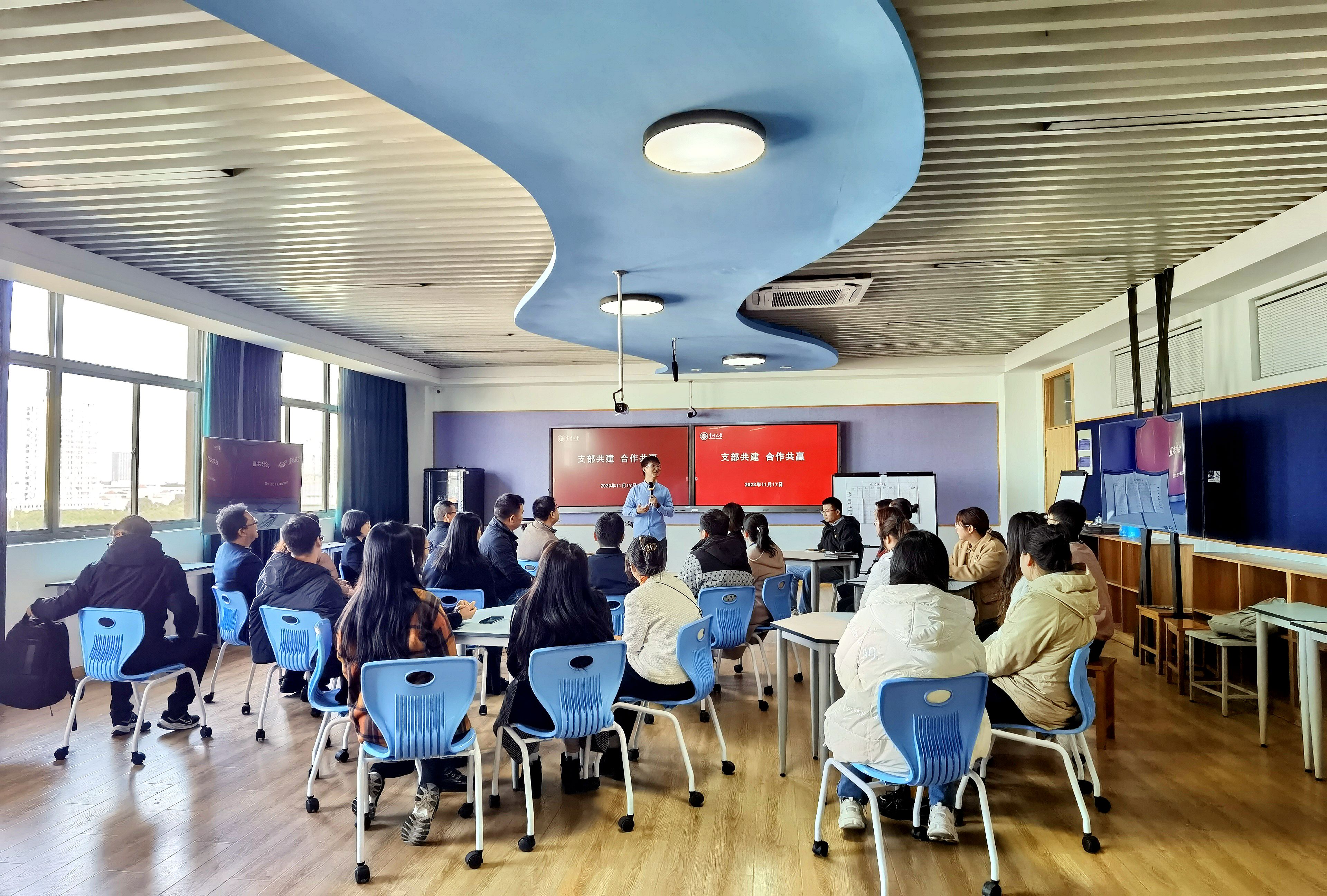 2023年11月17日下午,石油化工学院工程中心党支部与国采党支部开展了“支部共建 合作共赢”共建活动,双方就支部建设、品牌推广和国有资产管理以及采招流程等进行了交流,对化工国家级实验教学示范中心(常州大学)的建设进行了探讨。