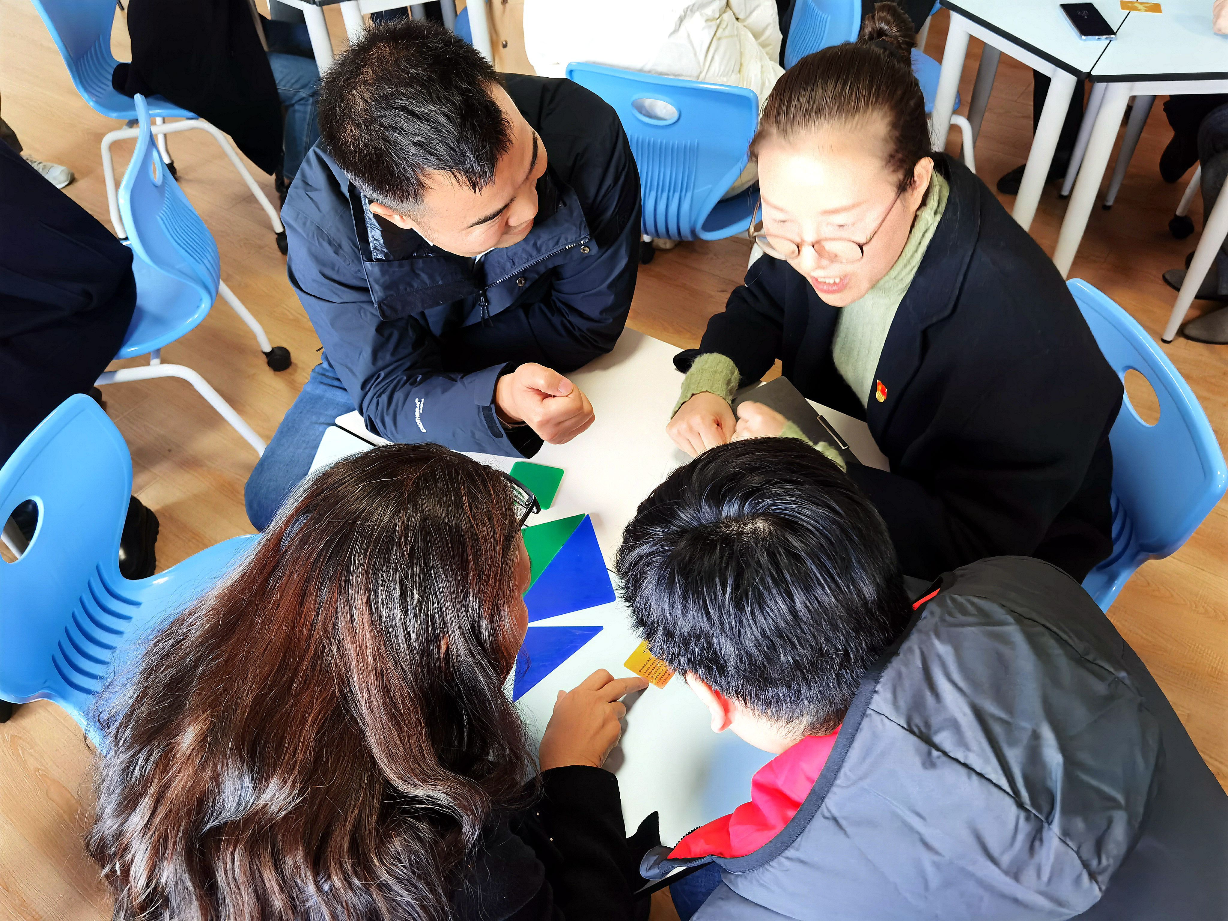 交流结束后开展了七巧板沙盘活动,将党员分成七个工作组,以七巧板为培训道具,通过团队内部和团队之间的配合完成一系列复杂任务,做到既有竞争又有合作。活动中大家积极沟通,信息与资源共享,体会到了团队之间交流合作的重要性,拓展了科学系统的思维方式,增强了全局观念,七巧板沙盘活动只是一个形式,更重要的是使大家明白了沟通与协作对于一个团队以及团队与团队之间任务完成的重要性,良好的沟通者既是一个有效的聆听者,也是一个有效的表达者,同时只有把合作的眼光从团队内部扩展到团队之间,大家才能共同进步。