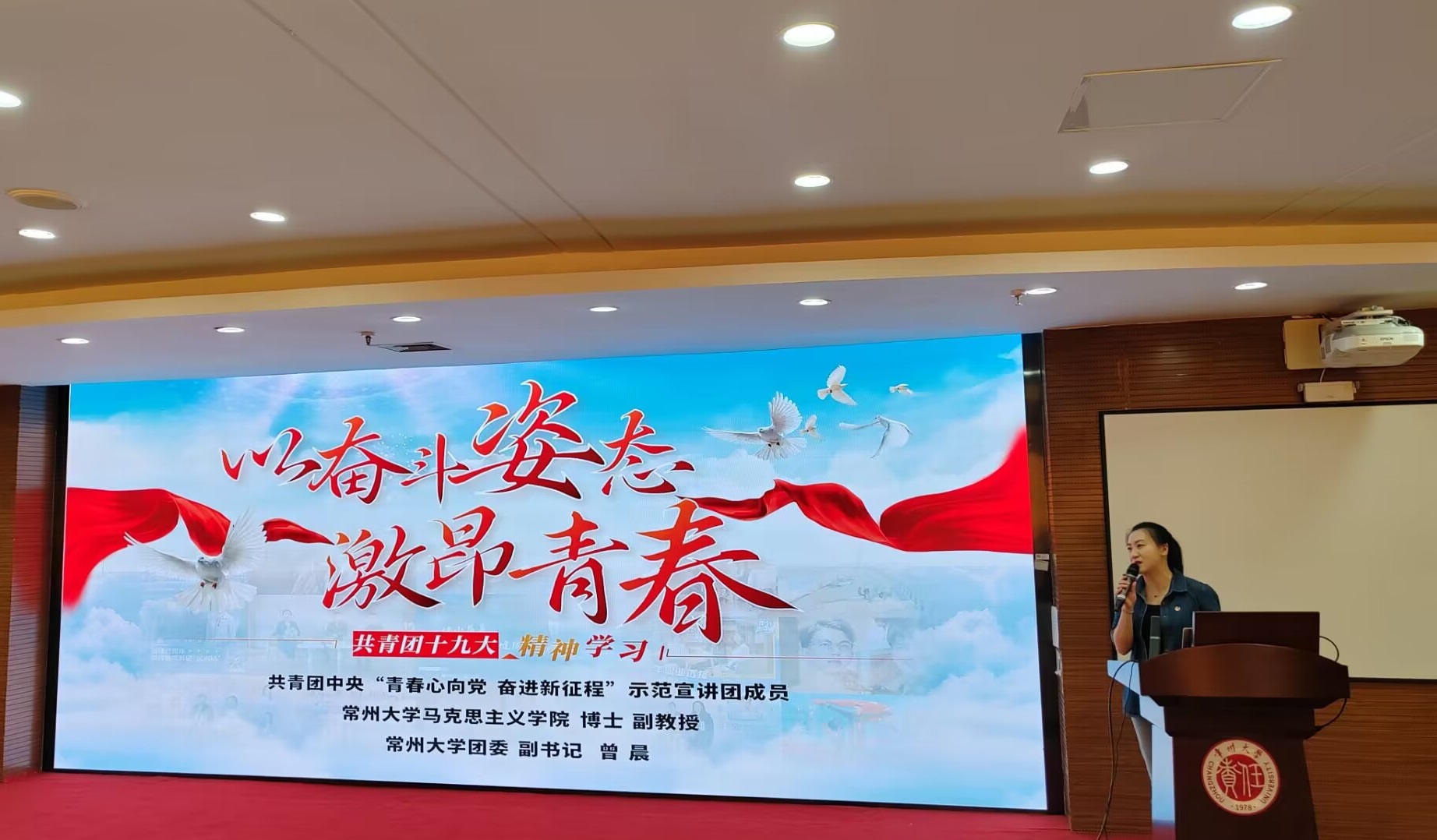 随后,曾晨以“以奋斗姿态激昂青春”为题为全体学生骨干讲述了一堂生动的信仰公开课。她带领学生重温近年来习近平总书记对青年同志的寄语,从以习近平同志为核心的党中央关心青年成长成才、习近平总书记关于青年工作的重要思想和实践要求、新时代青年成长要求等方面进行集中宣讲,深入解读了习近平总书记对当代青年的要求以及厚望。她强调,当代青年要践行“请党放心,强国有我”的青春誓言,更要坚定理想信念、提升道德素养、增强能力本领、矢志不渝奋斗,以奋斗姿态激昂青春,在强国建设接力赛中贡献磅礴的青春力量,为实现中华民族伟大复兴的中国梦而不懈奋斗!