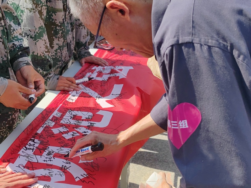 活动伊始,关工委老同志向在场同学们讲解了电信诈骗的危害、反诈的重要性,以及反诈的各种方式。接下来,关工委老同志在横幅上留下了自己的签名,为本次活动留下了浓墨重彩的一笔。最后,关工委老同志指导同学们积极参与反诈标语的创作。同学们纷纷表示,通过本次活动,同学们都深刻意识到反诈的意义及重要性,学习了相关反诈知识,大家将在以后的生活中,增强自我防范意识。