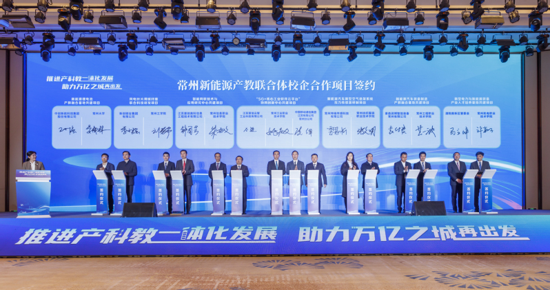 会上,常州合成生物产教联合体、常州碳纤维及复合材料产教联合体、常州智能电力装备产教联合体、常州检验检测认证产教联合体、常州智能制造装备产教联合体、常州新型电力与高端装备联合体等6个市域产教联合体揭牌;新能源锂电池产教融合基地共建、风电叶片用碳纤维联合科技研发、智能网联技术与应用研究中心共建、新能源汽车新型空气悬架系统压力传感器研制、新能源汽车装备制造产教融合基地共建、“5G+核心工业软件云平台”协同创新中心、新型电力与新能源装备产业人才培养基地共建等7个联合体校企合作项目签约;3个联合体重点规划项目发布,分别是:常州新能源产教联合体智慧云平台、万帮数字能源“种子计划”“桩主计划”、博世氢能源产业培训中心。