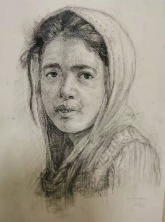 课前准备,作业开始前为学生展示历史题材创作作品,加深学生的爱国情怀。以立德树人为根本,以理想信念教育为核心,积极开展核心课“课程思政”教学创新建设,将思政元素融入素描头像课程,强化思政内涵,引导学生开阔视野,培养学生价值选择能力,树立正确的理想信念,并发掘课程思想政治教育资源,将思想政治教育的理念和职业道德培育渗透融入专业课教学,实现专业授课中知识传授与价值引导的有机统一,引导学生恪守职业道德、勇于创新、乐于奉献,加强文化自信和使命感,为进一步从事美术史奠定基础。