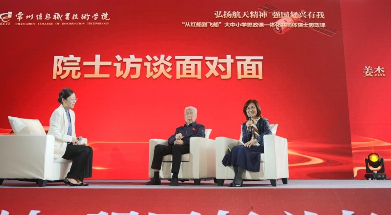 10月28日,常州信息职业技术学院领衔“从红船到飞船”大中小学思政课一体化共同体12家成员单位,举办“弘扬航天精神、强国复兴有我——院士思政课”。中国工程院院士、运载火箭系列总设计师、国家首次月球探测工程副总设计师龙乐豪和中国科学院院士、长征三号甲系列火箭总设计师姜杰来到师生们中间,讲述航天故事、弘扬航天精神,激励师生砥砺强国之志、实践报国之行。