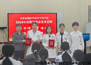 5月22日下午,邢台市第九医院技能训练中心会议室举行了一场隆重的教学质量优秀教师表彰仪式。沧州医专医学系见习指导教师、一支部党员教师孙汝智、杨坤娜与医院科教处王伟佳处长共同为医院的贾建峰、马中波、吕晓蕊、闫秀伶等四名教师颁发了“教学质量考核优秀”荣誉证书,表彰他们在2024年度教学工作中的突出贡献。