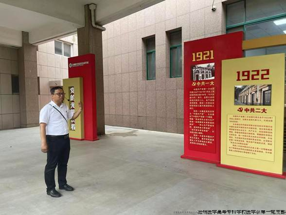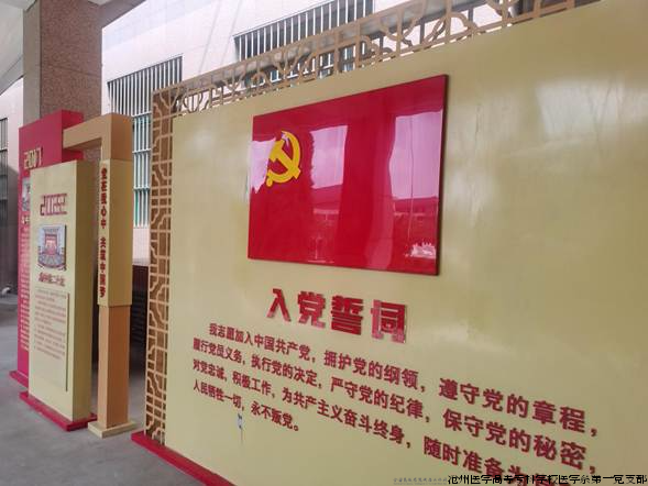 在新落成的党建思政文化长廊展区,马克思主义学院段湘君老师担任讲解员,以十四块主题展牌为脉络,全景式呈现学校大思政教育成果。展览坚持以“加强党的全面领导”为核心,紧密追随习近平总书记关心关爱沧州的足迹,将发生在沧州大地上的“盐碱地的故事”“黄骅港的故事”“大运河的故事”“红色基因的故事”以及学校“大爱沧医的故事”巧妙串联。