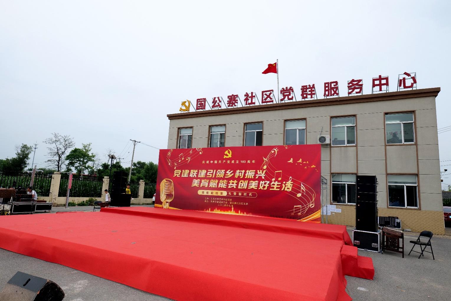 7月4日晚,由东北大学艺术学院党委主办,深井子街道党工委,国公寨社区党支部承办的“党建联建引领乡村振兴,美育赋能共创美好生活”主题文艺晚会在深井子街道国公寨社区举行。东北大学艺术学院、深井子街道、沈抚示范区党建工作部、汪深卫生院、深井子公安分局相关负责同志以及 400 余名群众一同观看了演出。