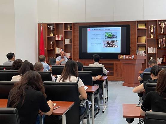 7月7日下午,东北大学计划财经处党支部、国际合作与交流处党支部和国际教育学院党支部在主楼1417党员活动室联合举办党史学习教育专题党课。学校党校常务副校长、机关党委书记初青松受邀作“从历史转折看党的初心使命”专题报告。三个党支部的全体党员以及部分教职工群众参加了学习。