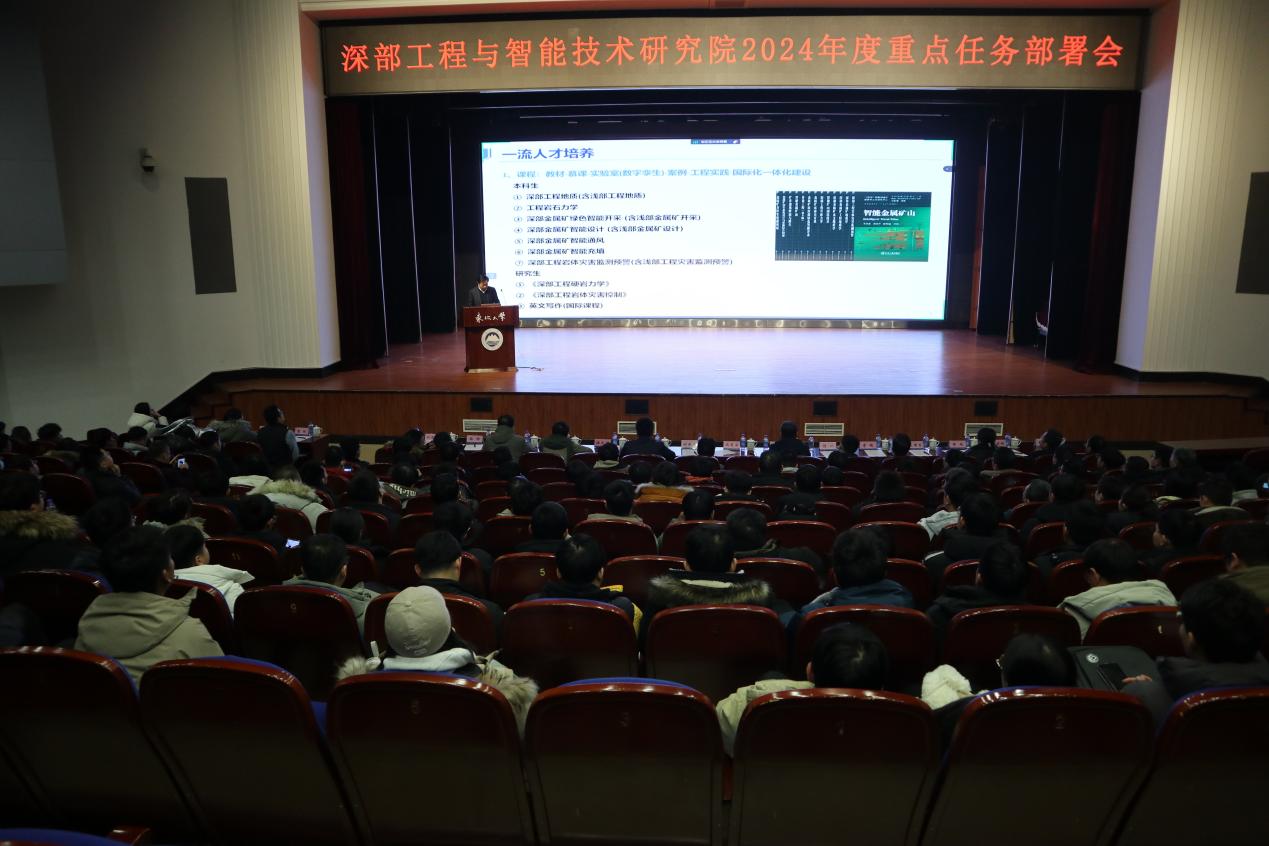 2024年2月25日上午,深部工程与智能技术研究院2024年度重点任务部署会在汉卿会堂一楼报告厅成功召开。会议由深部工程与智能技术研究院院长冯夏庭院士召集,研究院全体教职工、学生参加会议。会议邀请了东北大学发展规划与学科建设处处长沈岩柏、研究生院常务副院长刘承军、人事处处长李桂宾、人才工作办公室主任徐大可、资产与实验室管理处处长刘一、创新创业学院院长李鹤、科学技术研究院副院长李畅、资源与土木工程学院党委书记艾国生、教务处副处长周成利、资产与实验室管理处副处长郑旭参加会议。深部工程与智能技术研究院常务副院长刘造保教授主持会议。
