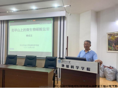 会上,柳成志教授介绍了微生物岩石的概念、发展历史及分类,全面深入讲解了柳江盆地亮甲山组微生物碳酸盐岩的宏观与微观特征、形成机理和发育模式等内容,结合亮甲山组丰富的碳酸盐岩类型,总结了凝块石生物丘、叠层石生物丘、均一石生物丘、迷宫状生物丘和复合状生物丘等多种模式。讲座现场气氛热烈,学院师生围绕相关主题展开了深入讨论。