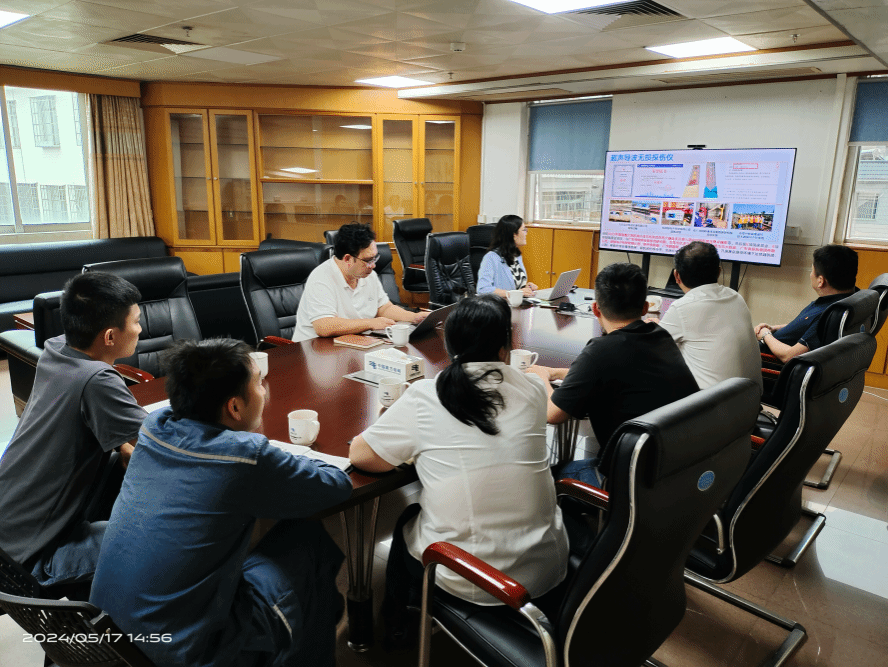 在新丰县供电局,局党委书记颜平、新丰供电生计部主任黄秀平等与郭建文一行座谈。为了解决新丰县供电局提出的电缆线的检测和电缆管道的堵塞排查等问题,武静博士针对性汇报了超声导波无损检测技术和仿生机器蛇的研究进展。其中,机器蛇结构高度灵活,有望高效解决新丰供电局电缆管道堵塞的排查问题。最后,双方就进一步开展联合主题党日活动的事宜达成了一致。