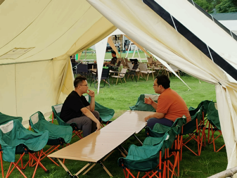 在蔬东坡农场,郭建文与负责人潘伟对接智慧农业实践事宜。双方就智慧农业下一步的研究和发展达成了共识。