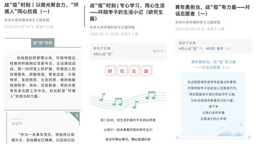 一堂堂生动的主题班会,一次次走心的线上交流,一个个鲜活的网络作品……封控管理期间,学校在保障网格化管理的同时,精心准备系列思政教育的云端“盛宴”,“全方位”守护,“全天式”陪伴每一位东华学子。面向全校学生召开“同心抗疫,共克时艰”网络主题班会,以同上“思政大课”的方式引导学生凝聚思想共识,坚定战疫信心。推出“嗨,你好吗”战“疫”频道系列微视频,用暖心访谈记录战疫一线的动人故事,传递战疫中的温暖与感动。服装学院依托专业优势,发挥美育特色,创作“绘创初心·同心战疫”系列漫画,以图文漫画形式分享校园抗疫故事,强化爱国担当,弘扬战疫精神。管理学院“领雁先锋”学生宣讲团以“学、思、践、悟”为理念,推出第三季“初心‘申’起”红色系列微课,讲好抗疫故事,讲深爱国精神。机械学院推出“口袋思政”系列微课,开展“以艺战疫,迎接贯彻党的二十大”专题网络作品征集活动,号召学生积极创作凝聚奋斗精神的文化作品,传播抗疫正能量、做好线上学习不掉线。环境学院征集抗“疫”系列网络文化作品,引导学生用漫画、诗词、摄影、博文等形式讲好抗疫故事。马克思主义学院举办“百年再出发,喜迎二十大——争做堪当民族复兴重任的时代新人”云知识竞赛、“同战疫,共守沪,青春献礼二十大”主题作品征集等理论研习活动,引导学生以昂扬姿态迎接党的二十大。时尚创意学院发挥学科特色,以朋辈力量引导,组建“iSCFer·战疫”宣传团,讲好战疫故事,号召全体学子让青春在抗疫大局中闪闪发光。