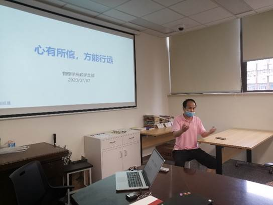 物理学系教学党支部近日召开“心有所信、方能行远”主题党日活动,深入学习贯彻习近平总书记重要回信精神,并结合“四史”学习,就如何坚定理想信念、进一步做好教书育人工作开展讨论。