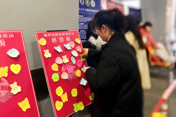 活动现场气氛活跃,很多同学都分享了自己的体会,“促进平等”、“呼吁关注残疾人生活”等主题的感想便签贴满了整个留言板。