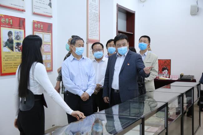 钱国玉一行先后参观了孟瑞鹏纪念馆、水利实验厅和艺术与设计学院以“艺”抗“疫”美术作品展,听取孟瑞鹏舍己救人英雄事迹介绍,查看黄河小浪底水利枢纽实验模型,了解我校在河流治理等方面的研究成果和人才培养情况等。