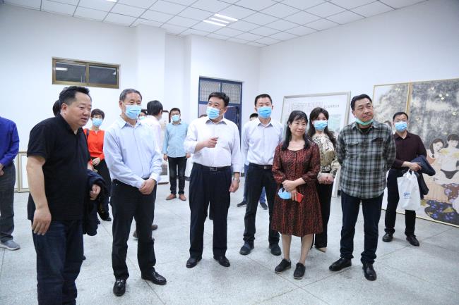 省政协副主席、书画院院长钱国玉一行参观艺术与设计学院以“艺”抗“疫”美术作品展