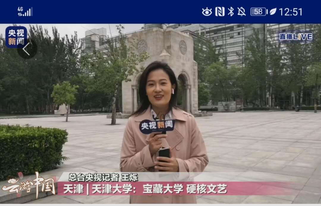 5月4日上午,央视新闻“云游中国”——五四特别直播和您相约在美丽的天大校园。在节目中,央视记者打卡了全国各个“最美大学校园”:看中国第一所现代大学——天津大学、赏北京大学未名湖、游拥有百年历史的复旦大学、品传统园林式雅致风格的南京师范大学、漫步号称“海景校园”的厦门大学、逛坐落在天府之国的四川大学。在节目中,天津大学卫津路校区的美丽风光隆重出镜。应网友期盼,央视记者走进了天津大学冯骥才文学艺术研究院实地探访,感受人文厚重的文化艺术氛围。