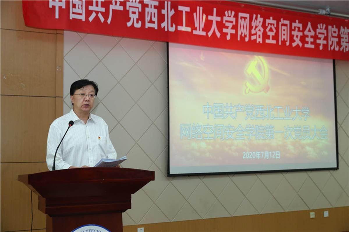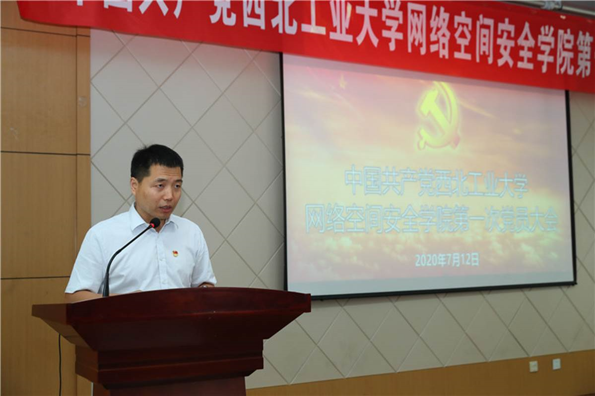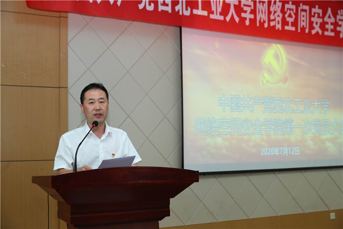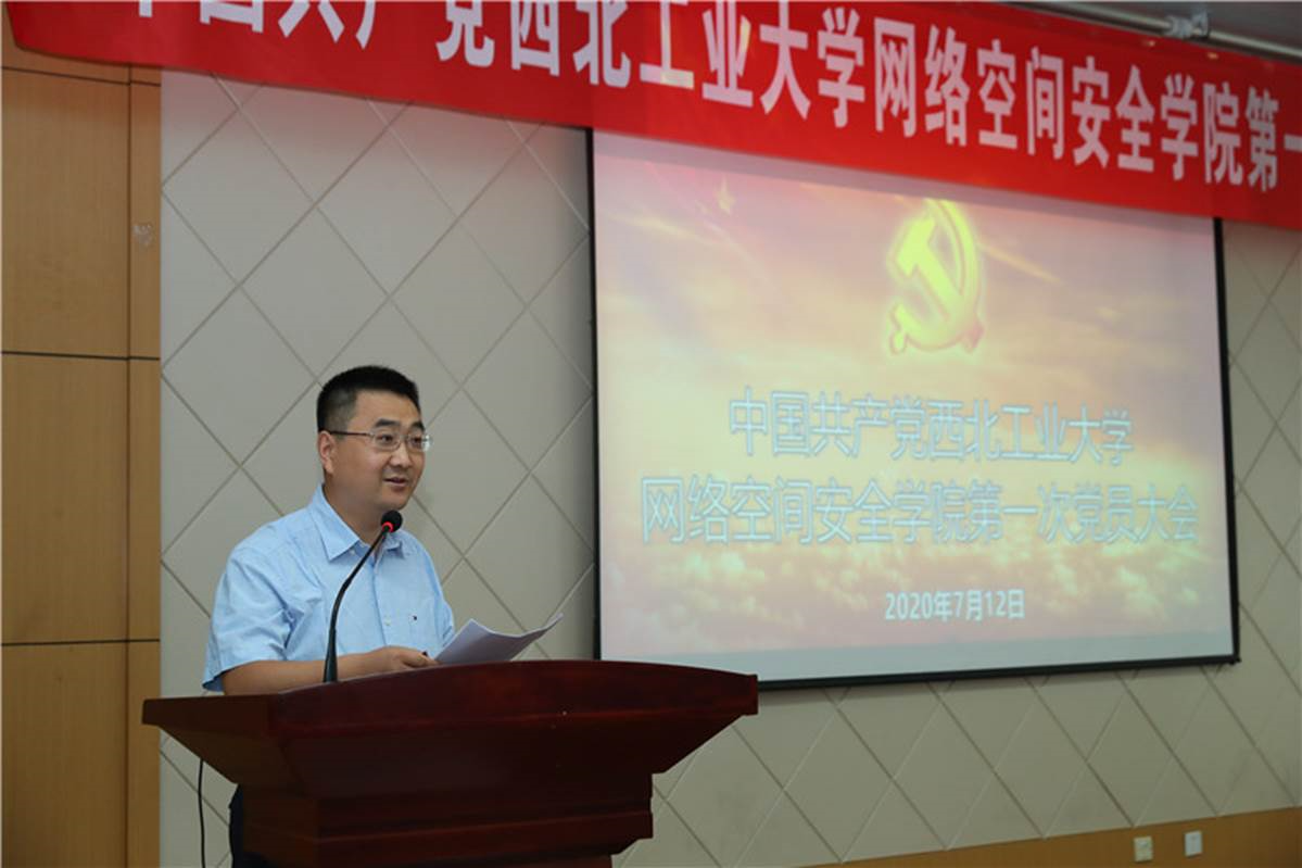7月12日下午,中共西北工业大学网络空间安全学院第一次党员大会在长安校区学院报告厅隆重开幕。校长助理张艳宁,党委组织部副部长段利兵,院党总支副书记王高祖(主持工作)、王宁军,副院长张盛兵、刘志强、刘家佳、徐晓峰及学院全体党员出席会议。大会由刘志强主持。