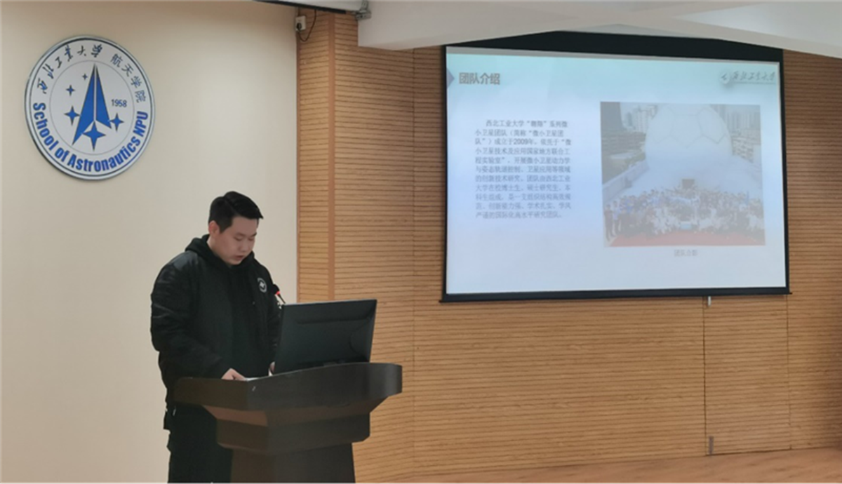 首先,来自精确制导与控制研究所的邢皓钰同学介绍了西北工业大学“翱翔”系列微小卫星团队的故事。2016年,在微小卫星即将搭载长征七号运载火箭升空前,为了确保弹射器的正常工作,团队成员连续进行了一个礼拜的振动及冲击试验,每天都会忙到凌晨三四点;团队成员自参与该项目以来,记忆最深刻的“假期”就是“春节”,但也基本上是“睡”过去的,因为实在是“太困了”,这样的故事在微小卫星团队不胜枚举。正是有这种只争朝夕,奋勇拼搏的劲头,短短几年间,团队坚持自主创新、始终瞄准航天科技发展前沿,突破和掌握了一批核心技术,取得了一系列重大进展,终将微小卫星从想法变成了现实。
