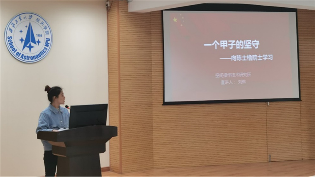 最后,空间操作技术研究所的刘琳同学讲述了陈士橹院士为航天事业做出的巨大贡献,以及陈院士严谨治学的工作态度和高尚的个人品格。陈士橹院士排除万难,开拓创新,在1959年亲手创建了西北工业大学宇航工程系,并在后来宇航专业遭遇“撤并”危机下奔走呼吁,将西工大宇航工程系保留了下来,也为我国航空航天事业保留了一支重要的有生力量。陈士橹院士一生爱岗敬业,始终坚守航天教育事业,为国防建设孜孜不倦、锲而不舍! 为祖国强大敢于担当、鞠躬尽瘁!