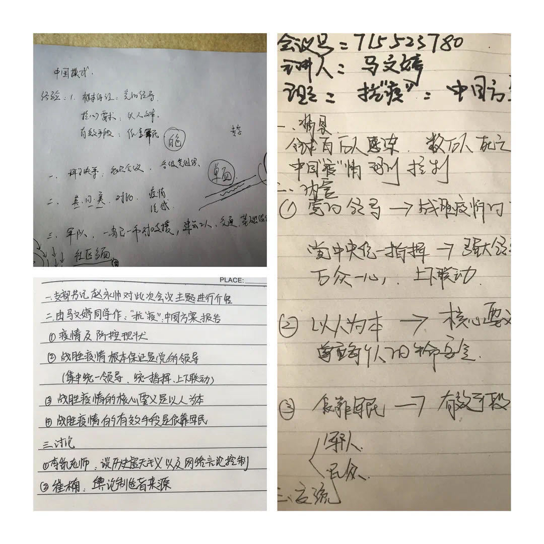 接下来,支部将依托“疫情防控”系列主题研讨会,不断创新形式、抓好内容、积极作为,认真做好疫情防控期间的支部党建工作,继续深化党建与学业互相融合的发展路径,提升支部党建质量。进一步落实支部和成员发挥战斗堡垒作用和先锋模范作用,积极引导支部党员调整研究方向服务重大疫情期间国家需要,按计划、分步骤开展全国样板党支部培育创建工作。