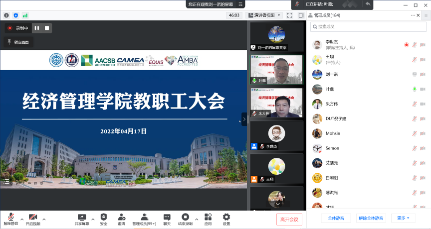为了贯彻落实学校4月13日疫情防控工作会议精神,统筹做好疫情防控与人才培养、科学研究等各项工作,4月17日下午,经济管理学院以腾讯会议的形式召开全体教职工大会。会议由学院党委书记叶鑫主持。