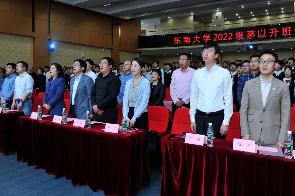 2021级茅以升班班长刘子怡带领茅班全体在校生宣誓,在“我宣誓!”的雄壮誓言中,新老茅班人对于传承茅老意志,发扬交院精神,为中国交通事业的未来而砥砺前行,不断奋进的决心和斗志感染了在场的所有人。新时代、新征程,我们不忘初心与使命,东大梦、中国梦,我们只争朝夕,不负韶华。