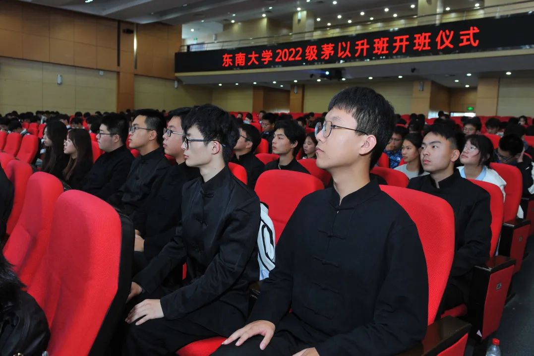 茅以升班是一个优秀的集体,在东南大学,茅以升班已经成为一个班级品牌。茅班精神薪火相传,为了祝贺学弟学妹们成为新一届的茅班人,也为了给他们做好榜样,每届茅班开班仪式上,茅班的同学们都会为新一届茅班学子寄语,将茅班精神传承。2021级茅以升班代表李沐轩同学和张梦娜同学向到场师生展示了东南大学茅以升班在学习、科研、志愿活动、学生工作等方面的风采与荣誉,相信茅班学子们会在茅老精神的感召下,继续团结奋进,给茅以升班赢得新的辉煌与荣誉。