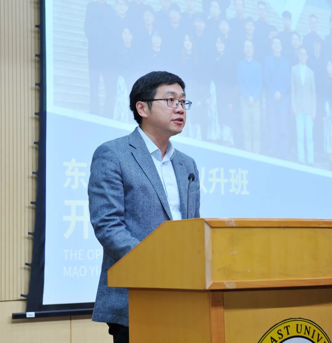 交通学院院长陈峻老师首先向新加入茅以升班的40位新同学表示了热烈欢迎,介绍了学院为茅以升班提供的学科教学平台、实践创新平台、国际交流平台,现已成为引领性的人才培养示范基地。学子们应当树立报国志,建功新时代,成为引领学科行业发展的领军人才。他还特别提出,在学院 “前路先贤”雕塑落成仪式上,茅玉麟女士对茅以升班的学子成长也表示充分关心,希望大家传承前辈的精神。