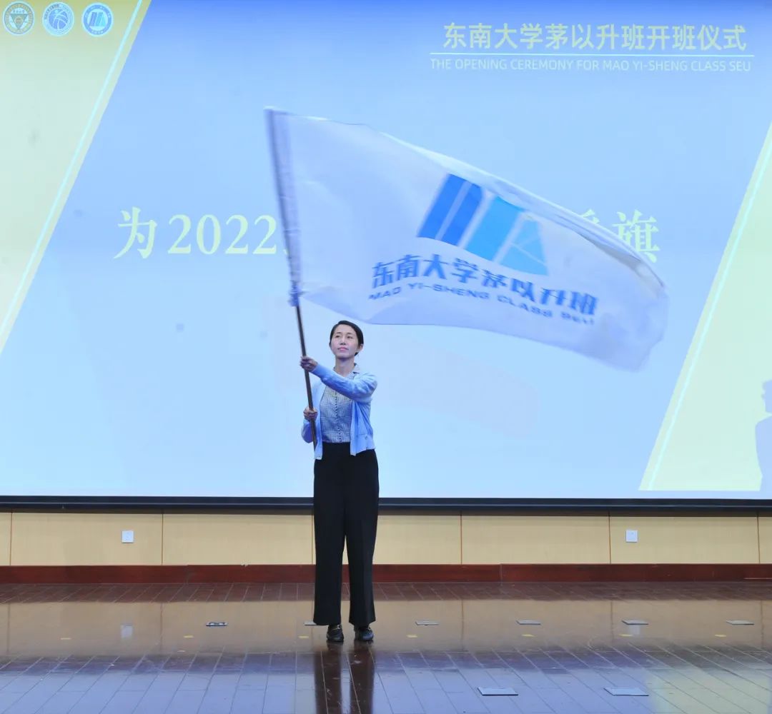 自2007年成立至今,在一届又一届茅班学子的不懈奋斗和努力下,茅以升班形成了“忠诚·勤学·奉献·博采”的班级文化。2021级茅以升班代表宫舒怀同学和2022级茅以升班代表赵梓淳同学交接班旗,校团委副书记张琰老师为茅以升班授旗。