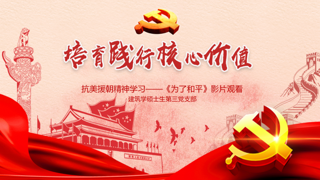 建筑学硕士生三支部以爱国主义、抗美援朝精神学习为主线,开展了线上《为了和平》影片观看主题党日活动。