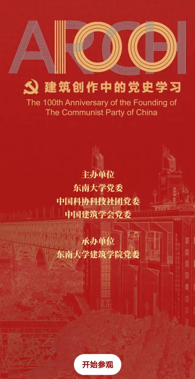 6月28日以来,为庆祝中国共产党成立100周年,由东南大学党委、中国科协科技社团党委和中国建筑学会党委联合举办,东南大学建筑学院党委承办的“建筑创作中的党史学习”展已开展半月。今天,由东南大学建筑学院党委制作的主题线上展馆也已正式上线!