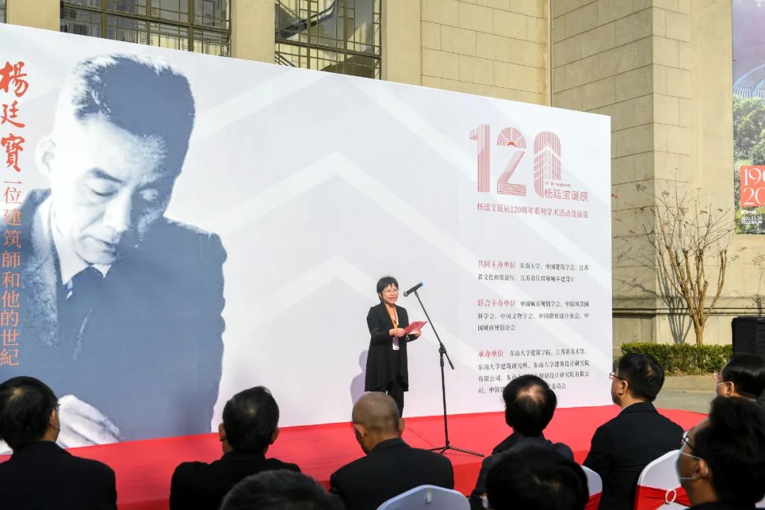 韩立明代表市委市政府对杨廷宝先生的杰出贡献和精神风范表示深切缅怀,回顾了杨廷宝先生和他开创的事业对于南京的意义。她说,上世纪30年代后,以杨廷宝等为代表的中国第一代留洋建筑师学成归国后,以满腔爱国热忱和非凡才华,为中国建筑事业和建筑教育事业作出了重大贡献。杨廷宝先生留下的建筑经典成为刻在南京城市肌理上的永恒记忆,开拓的建筑教育事业成为南京科教名城的重要组成部分,推动的国际交流合作成为南京扩大世界影响力的先行探索。迈进新征程,南京确立了全面建设人民满意的社会主义现代化典范城市的奋斗目标。建设典范城市,文化是重要内涵,规划和建设是重要手段。我们将一如既往保护和利用好杨廷宝先生等大师和历史留下的建筑文化遗产,延续城市文脉,传承优秀文化,激发创新活力,提升空间品质;同时也期待建筑学界各位大师、业界各路精英,多提宝贵意见、多出精品力作,共同在这方创新活力与人文魅力交融、古都风韵与时代风尚辉映的热土上,谱写中国现代建筑事业发展的时代华章。