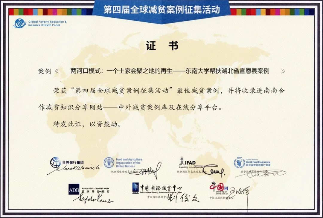 东南大学建筑学院张彤教授团队的实践案例《两河口模式:一个土家会聚之地的再生——东南大学帮扶湖北省宣恩县案例》成功入选“第四届全球减贫案例征集活动”最佳减贫案例,并将收录进南南合作减贫知识分享网站——中外减贫案例库及在线分享平台。
