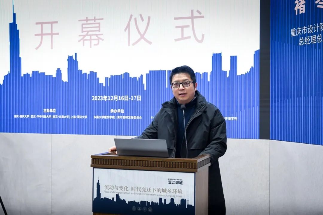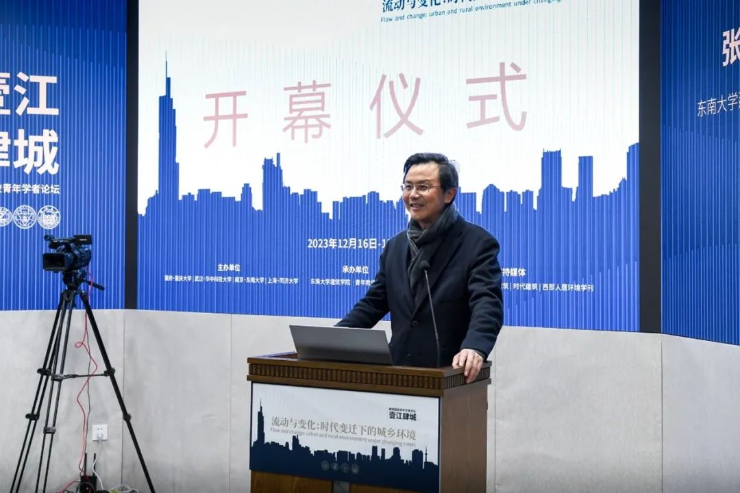 论坛开幕仪式由东南大学建筑学院副院长江泓主持,东南大学建筑学院院长张彤教授、重庆市设计院有限公司总经理总建筑师褚冬竹教授、Frontiers of Architectural Research 期刊副主编唐芃教授分别发言致辞。