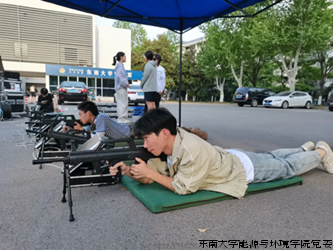 东南大学至善民兵连、东南大学国防军事实践团以及东南大学射击队的加入为活动增添了别样的军事体验,在两个隐藏站点活动中,小组成员通过射击以及党建VR设备体验,获得特殊能力卡片,增加了活动的趣味性与教育意义。