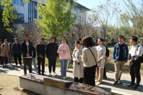 参观完展厅后,恩来干部学院的老师带领全体同志踏足学院为纪念中国共产党人从诞生到使得中华民族能够在当今世界民族之林立稳脚跟的奋斗历程所修筑的“追梦之路”。这条道路曲折蜿蜒,象征了中国共产党人的艰辛奋斗历程。道路两侧依照时间先后的顺序依次设立了南昌起义、遵义会议、解放战争、抗美援朝的讲解石碑,诉说着中国革命的艰难险阻。在沿路前行的途中,同志们回顾历史,审视初心牢记使命,以期继往开来。