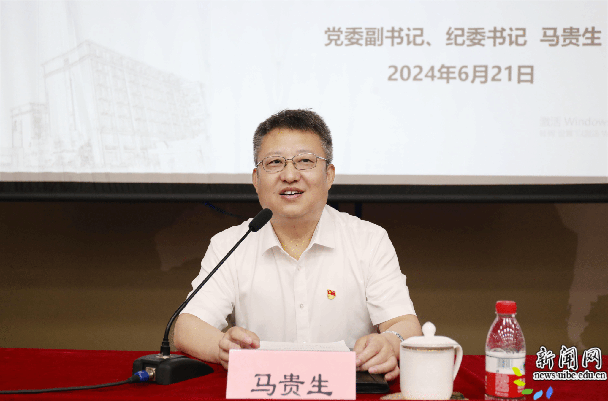 马贵生指出,要以党纪学习教育为契机,两手抓、两促进,紧密结合学校实际推动重点工作落实。要结合党纪学习教育,推动健全学校全面从严治党体系,《条例》是贯穿全面从严治党全局的制度保障,要学好《条例》,纵深推进学校全面从严治党各项工作,提升以高质量党建引领事业高质量发展的能力。要结合党纪学习教育,一体推动党风政风、师德师风、校风学风建设,紧密结合学校实际,教育引导党员领导干部学纪、知纪、明纪、守纪,以优良的党风政风,引领师德师风、校风学风持续向好。要结合党纪学习教育,研究推动学校其他重点工作,延伸学习上级文件精神和学校有关制度,研究落实重点领域廉洁风险防控工作,学以致用提升个人能力,把纪律规矩运用到实际工作中,推动学校事业健康发展。