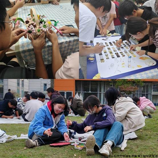 在扭扭棒活动中,同学们通过巧妙的编织技巧,制作出各种有趣的造型,锻炼了手眼协调能力。扎染活动则让同学们领略到了传统工艺的魅力,他们在布料上自由发挥,创作出独一无二的图案。黏土和陶艺活动则让同学们感受到了泥土的神奇,他们用双手塑造出形态各异的作品,培养了对材料的感知和运用能力。毕业季活动中同学们制作毕业纪念品,记录他们在成电的难忘瞬间。