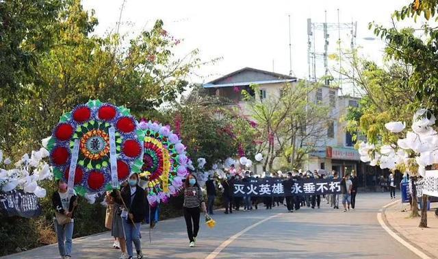 3月31日,19名扑火队员遗体被运送下山,抵达西昌市区,被送往殡仪馆。不少市民自发走上街头,手捧菊花,拉起长幅,抬起花圈,向英雄告别。